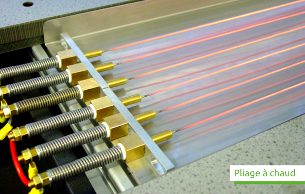 • Pliage à chaud sur plieuse automatique ou banc de chauffe